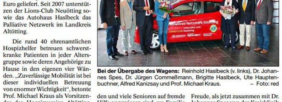 Übergabe von 11. neuem Fahrzeug an Palliativstation zusammen mit Autohaus Haslbeck im Juni 2016